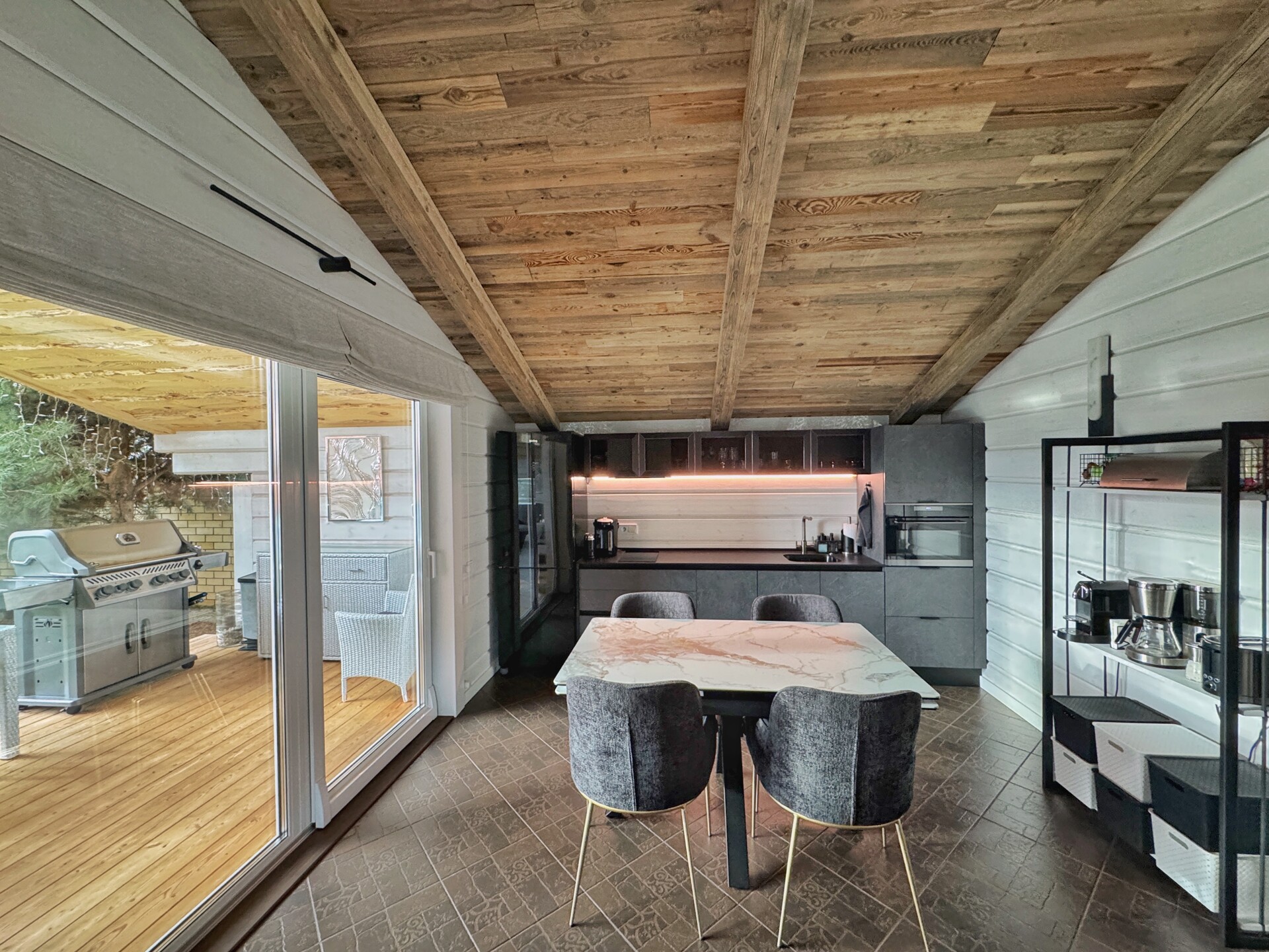 Площадь террасы 24 кв.м, оборудована мебелью, камином, красивым дизайном